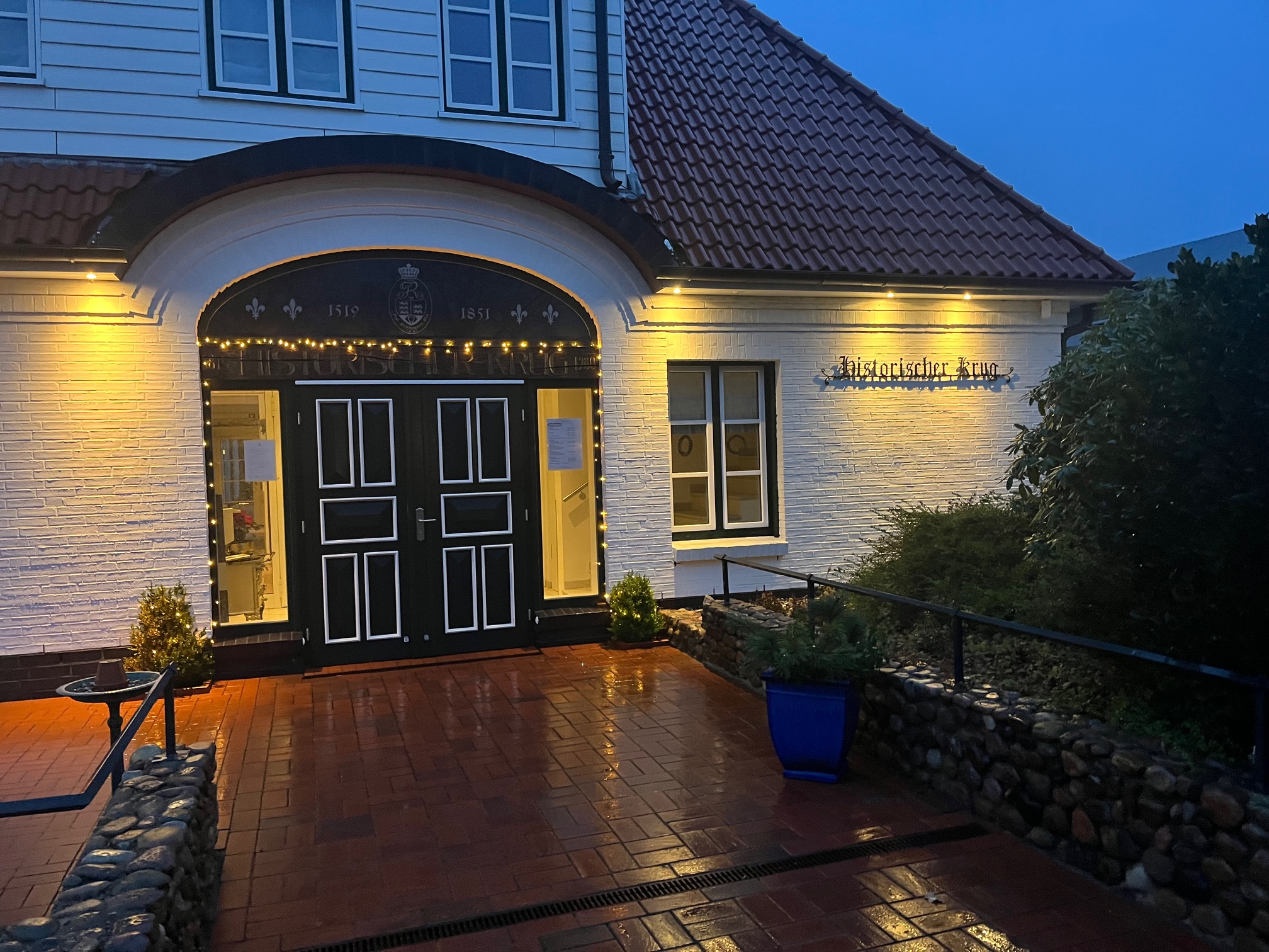 Dieses Haus trägt den Zusatz: Kongelig privilegeret Kro. Das bedeutet, dass diese Gasthäuser von dem dänischen König ausgezeichnet und von der Königsfamilie bei Ausflügen und im Urlaub als Domizil genutzt wurden. Der Historische Krug ist der einzige königlich privilegierte Krug auf deutschem Boden.